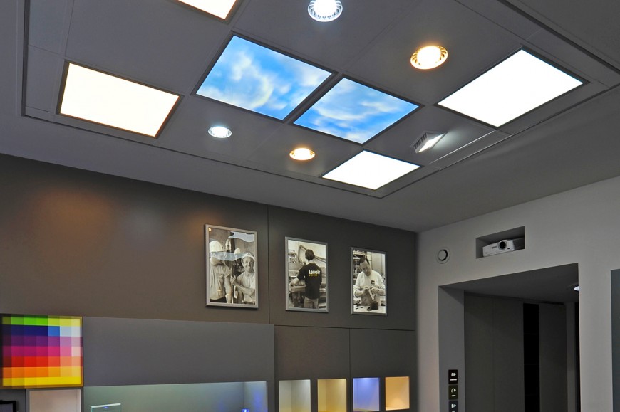 Proposées dans différentes dimensions 1200x600, 600x 600, 1200x300, 600x300 pour toutes les ossatures de plafond, en suspendu, les dalles Led peuvent aussi être déclinées :